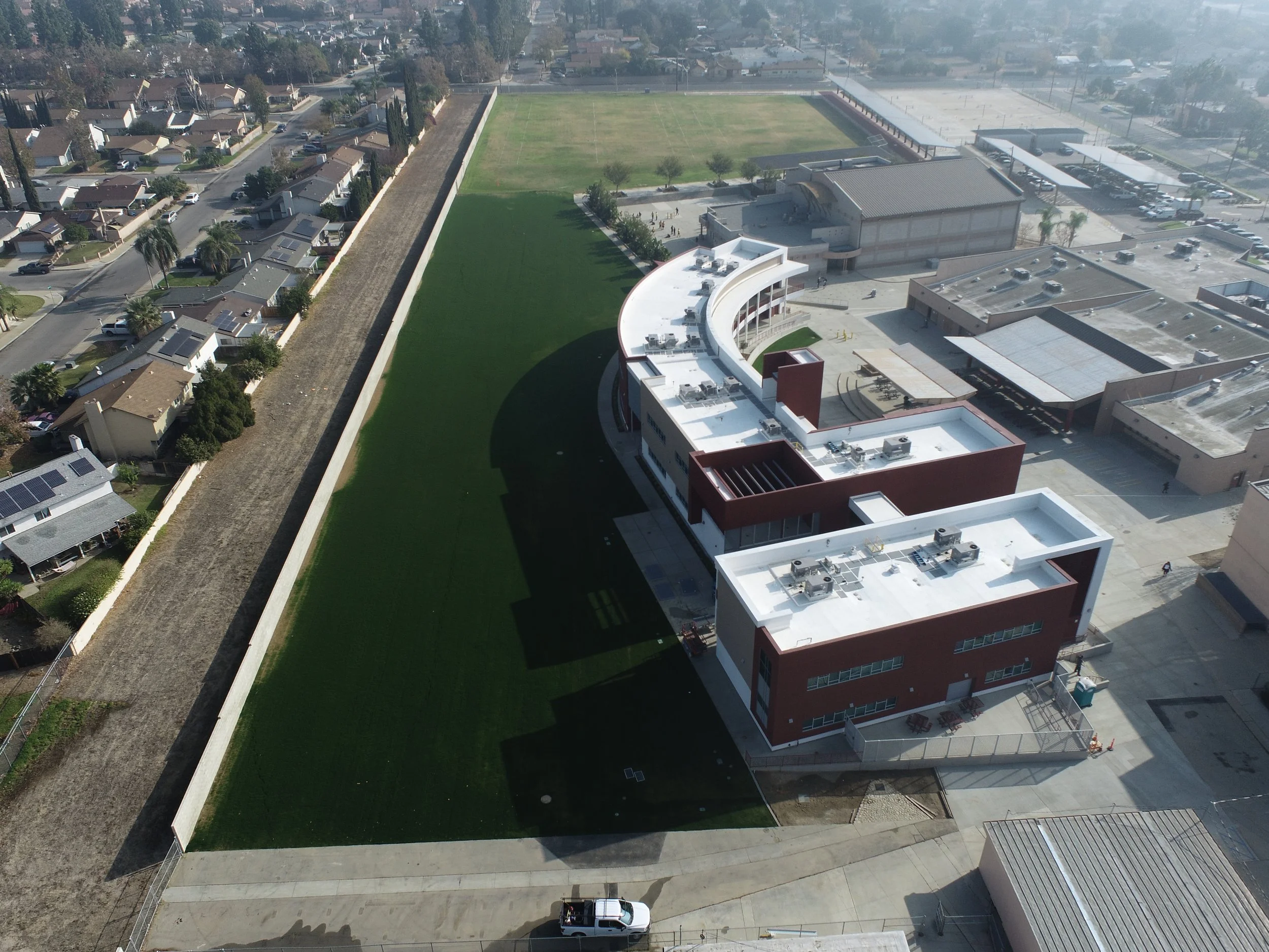 Work of this contract comprises general construction of a new two-story classroom building and relocating four existing portable classrooms for Cucamonga School District.